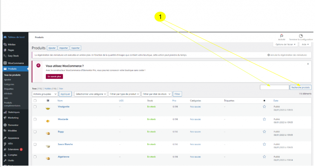 1-Choisissez votre produit en tapant les 3 premieres lettres de celui ci
