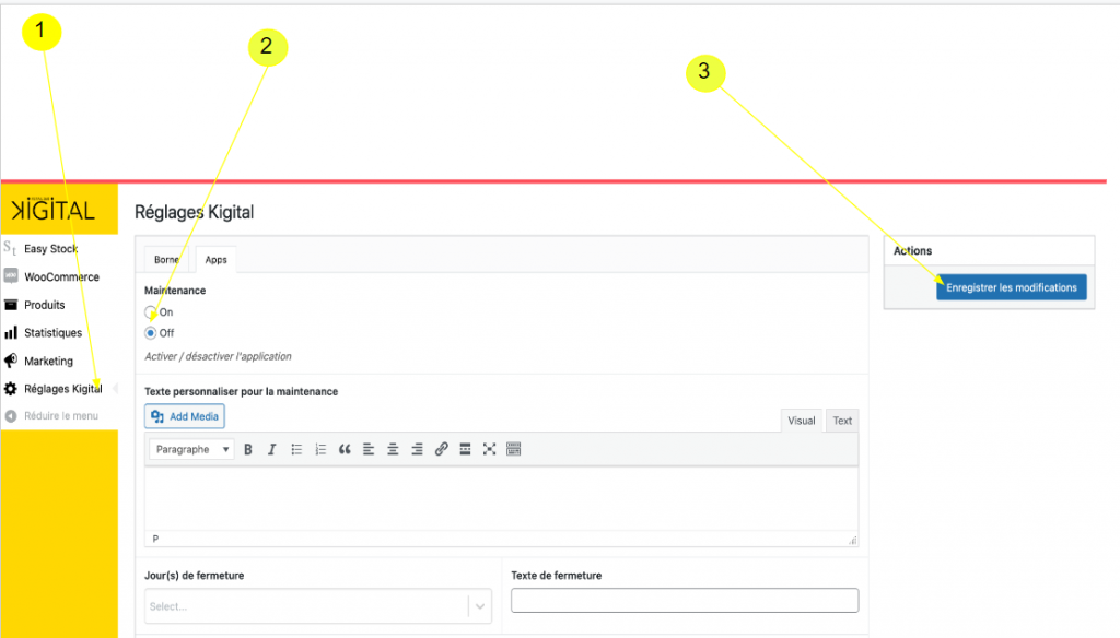 Pour remettre Kigiapp en fonction faites la même chose en appuyant sur On.