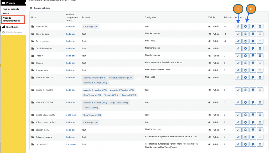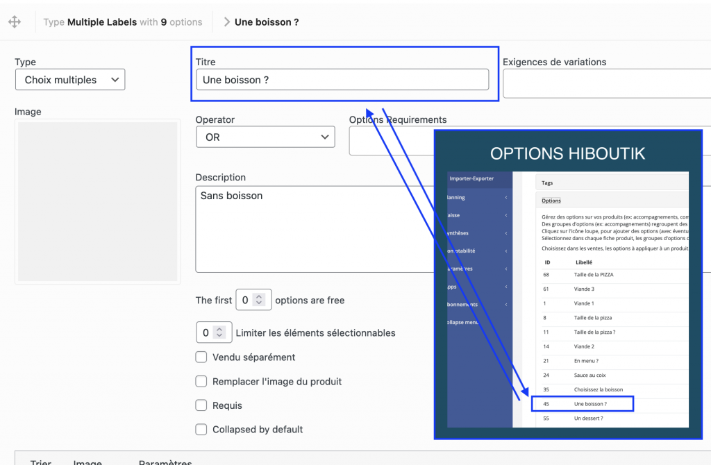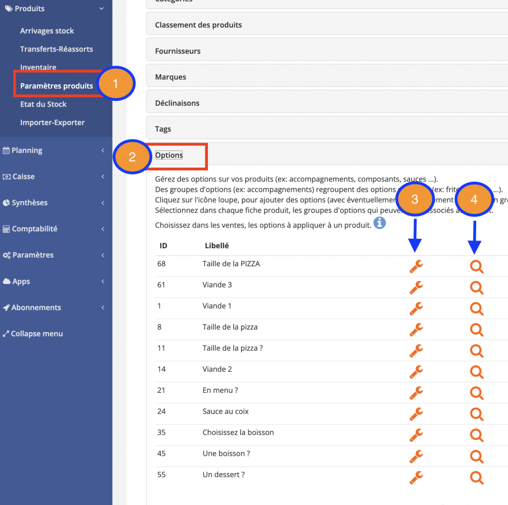 2.1 Modifier les produits complémentaires sur Hiboutik