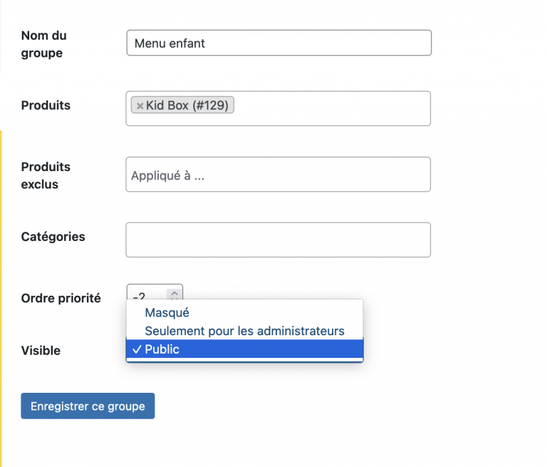 En passant le groupe en « masqué » l’ensemble des produits complémentaire du groupe ne sera plus visible.