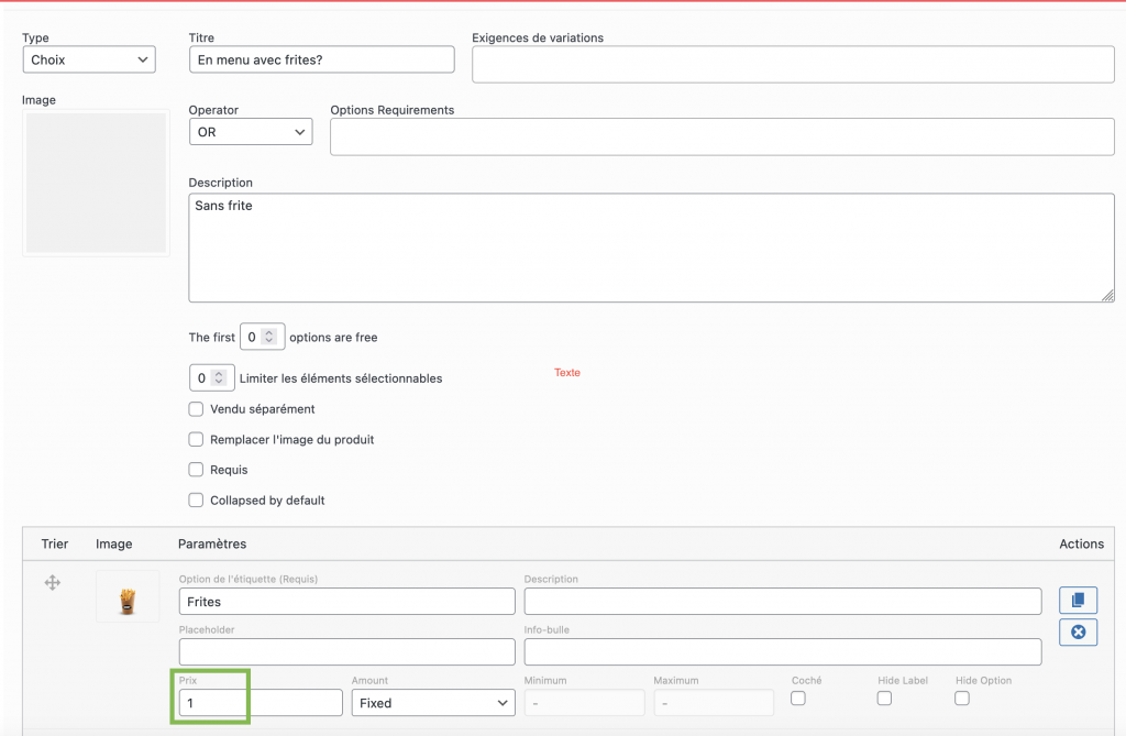 2. Changer le prix d'un produit complémentaire