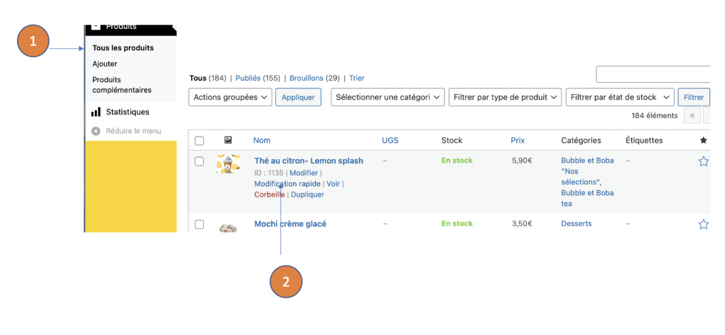 Si vous n’avez pas de caisse, vous pouvez éditer vos produits complémentaires ici.